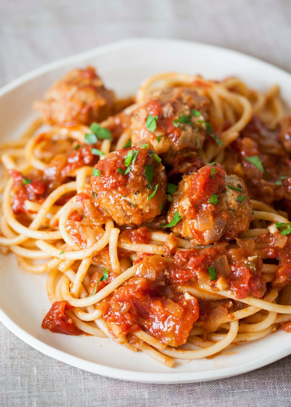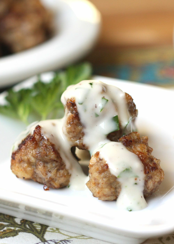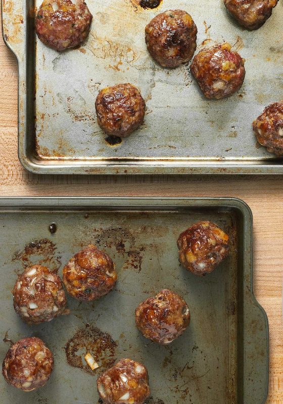 2 slices bacon, minced 2 garlic cloves, minced 2 large eggs 1/2 cup bread crumbs 1 1/2 teaspoons salt 1 1/2 pounds ground pork 2 teaspoons dried oregano or finely chopped fresh mint 1-2 teaspoons chipotle powder (or a couple teaspoons of adobo sauce) 2 Tbsp olive oil 1 medium onion, chopped, about 1 cup 3 garlic cloves, minced 1-3 chipotles chiles in adobo (canned), minced fine and sauce reserved 1 28-ounce can crushed tomatoes (preferably fire-roasted) 1 teaspoon dried oregano 1/2 cup beef or chicken broth 1 Preheat oven to 400°F.