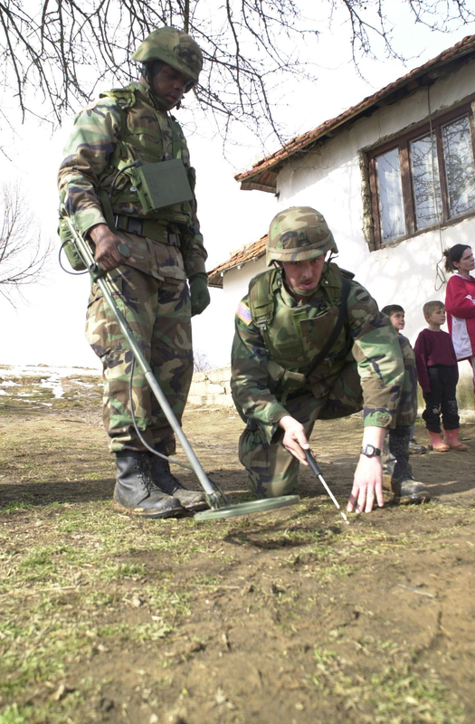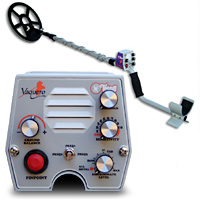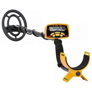 A metal detector is an electronic instrument which detects the presence of metal nearby. Metal detectors are useful for finding metal inclusions hidden within objects, or metal objects buried underground. They often consist of a handheld unit with a sensor probe which can be swept over the ground or other objects. If the sensor comes near a piece of metal this is indicated by a changing tone in earphones, or a needle moving on an indicator. Usually the device gives some indication of distance; the closer the metal is, the higher the tone in the earphone or the higher the needle goes. Another common type are stationary "walk through" metal detectors used for security screening at access points in prisons , courthouses , and airports to detect concealed metal weapons on a person's body.